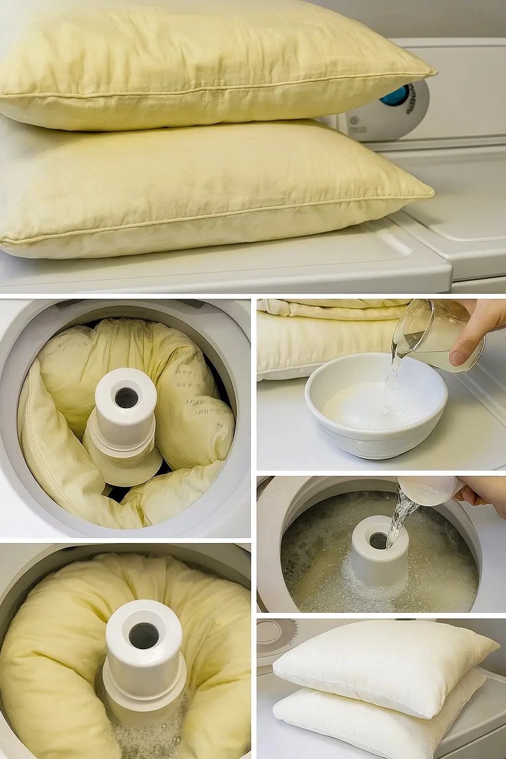 Pour blanchir des oreillers jaunis et tachés, nul besoin de détergent : voici une astuce