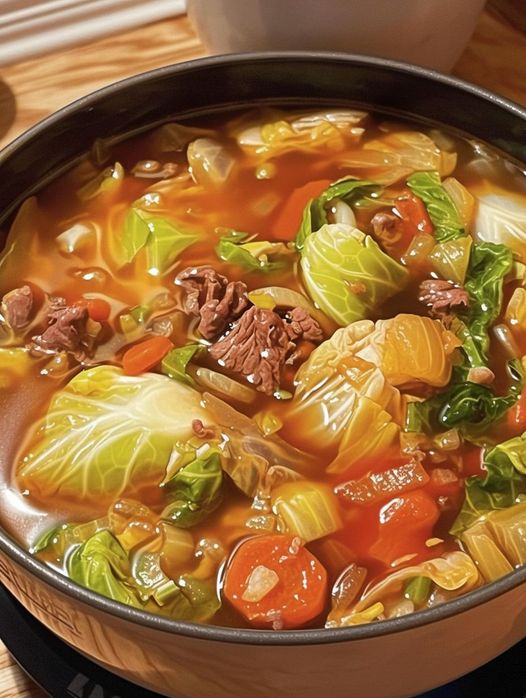 🍲Soupe aux choux🍲 Ingrédients: 1 gros chou, haché 2 petits oignons, coupés en dés 2 boîtes de compote de tomates 1 sachet de mélange à soupe à l’oignon Lipton (n’importe quelle saveur) 1 grosse branche de céleri, hachée finement Bœuf haché (1 à 2 livres) Instructions: la suite au page suivante