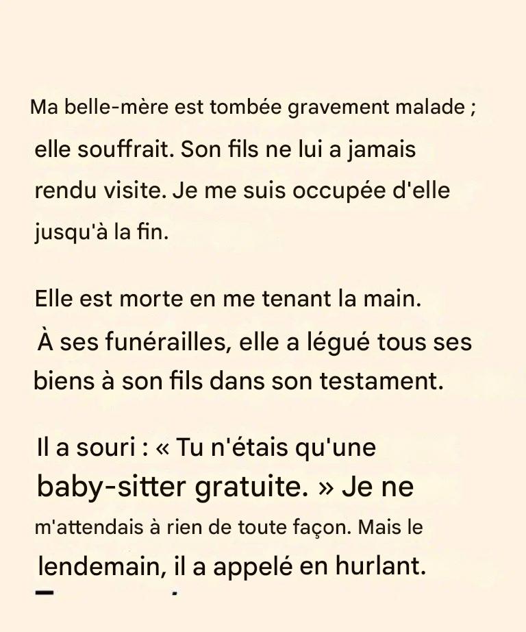 Mais le lendemain, son fils appela – en colère, confus, presque en hurlant.
