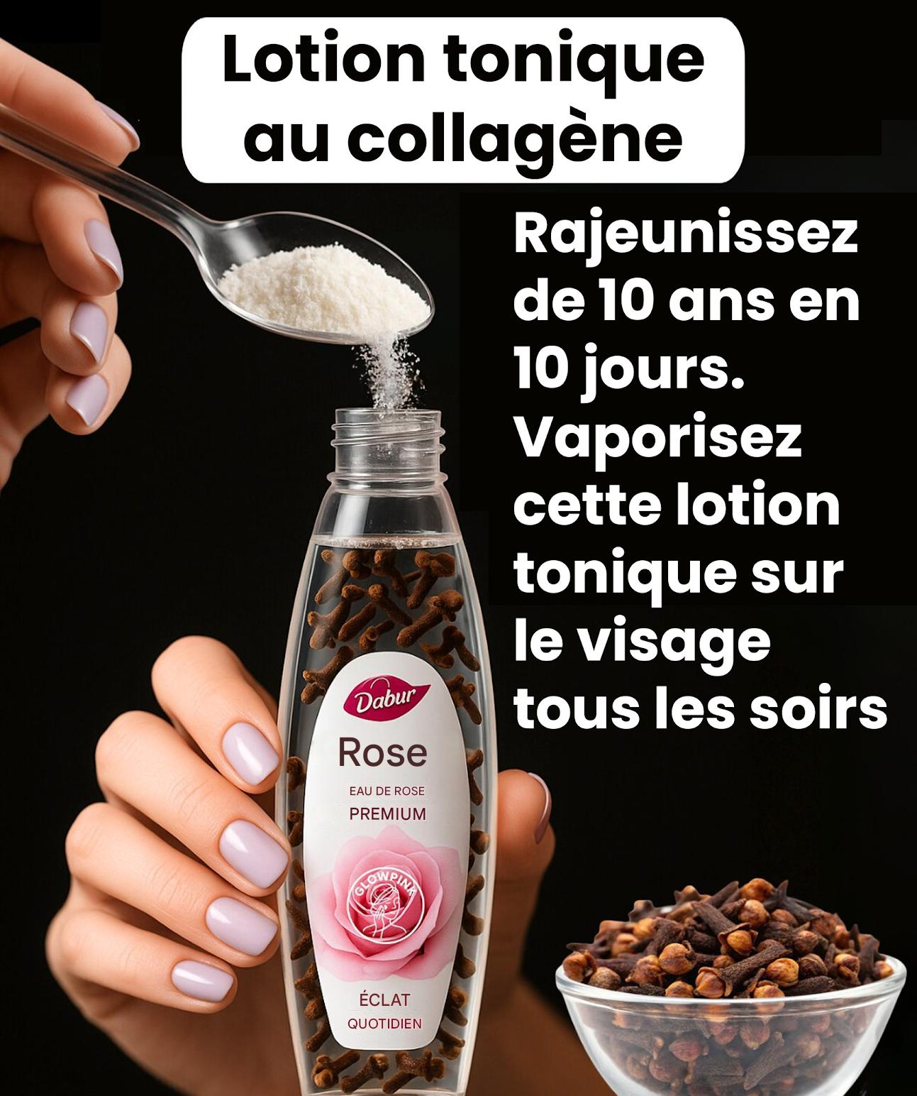 Lotion tonique maison à l’eau de rose, au curcuma et aux clous de girofle — un soin naturel qui stimule le collagène et illumine la peau
